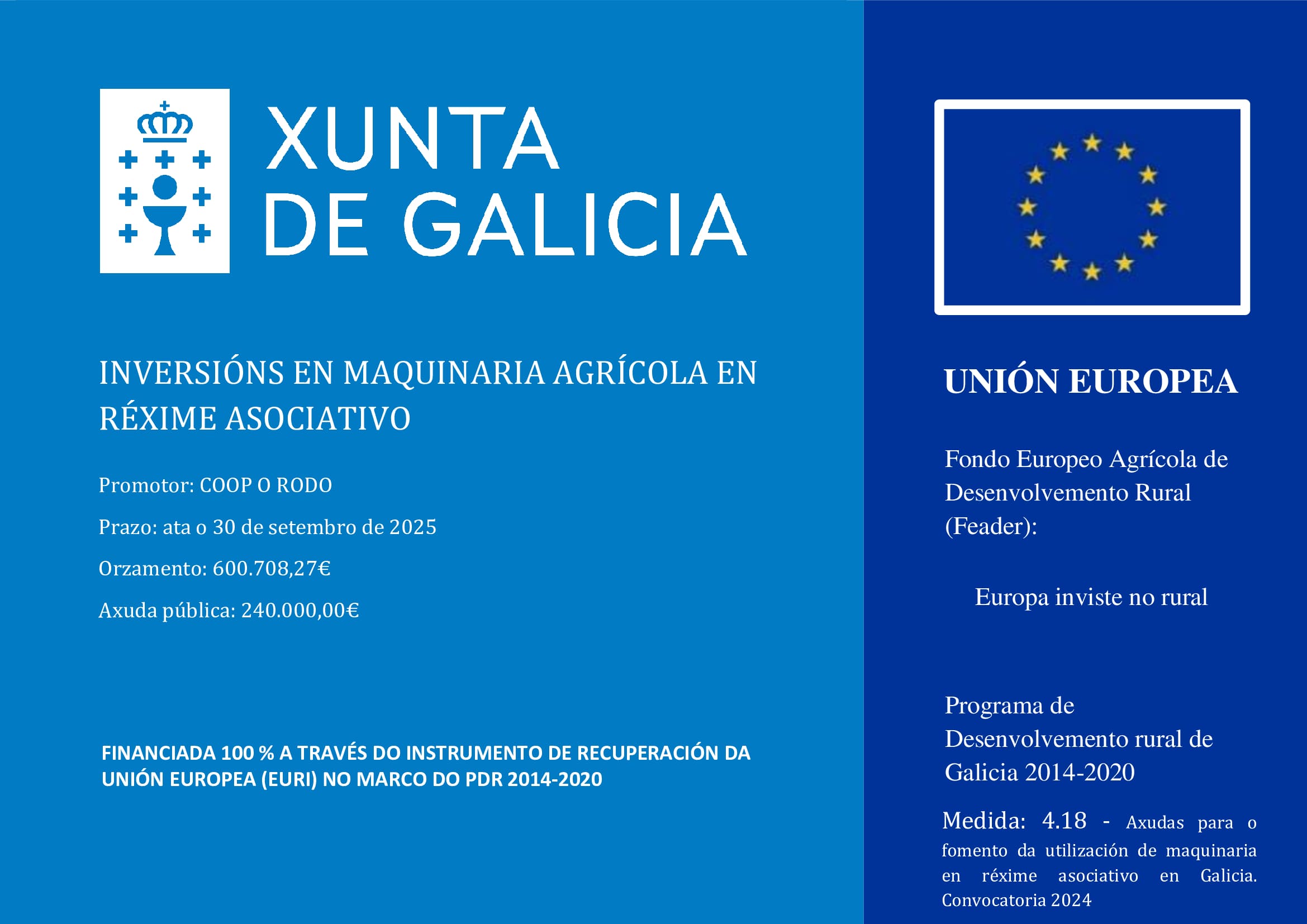Proxecto acollido ao programa de incentivos 1,2 e 3 vencellados ao autoconsumo e ao almacenamento no sector servizos e noutros sectores produtivos, no arco do Plan de Recuperación, Transformación e Resiliencia europeo, financiado pola Unión Europea - NextGenerationEU (código de procedemento IN421W)